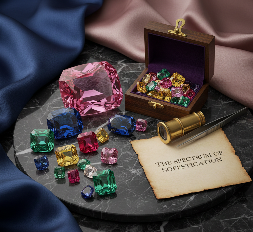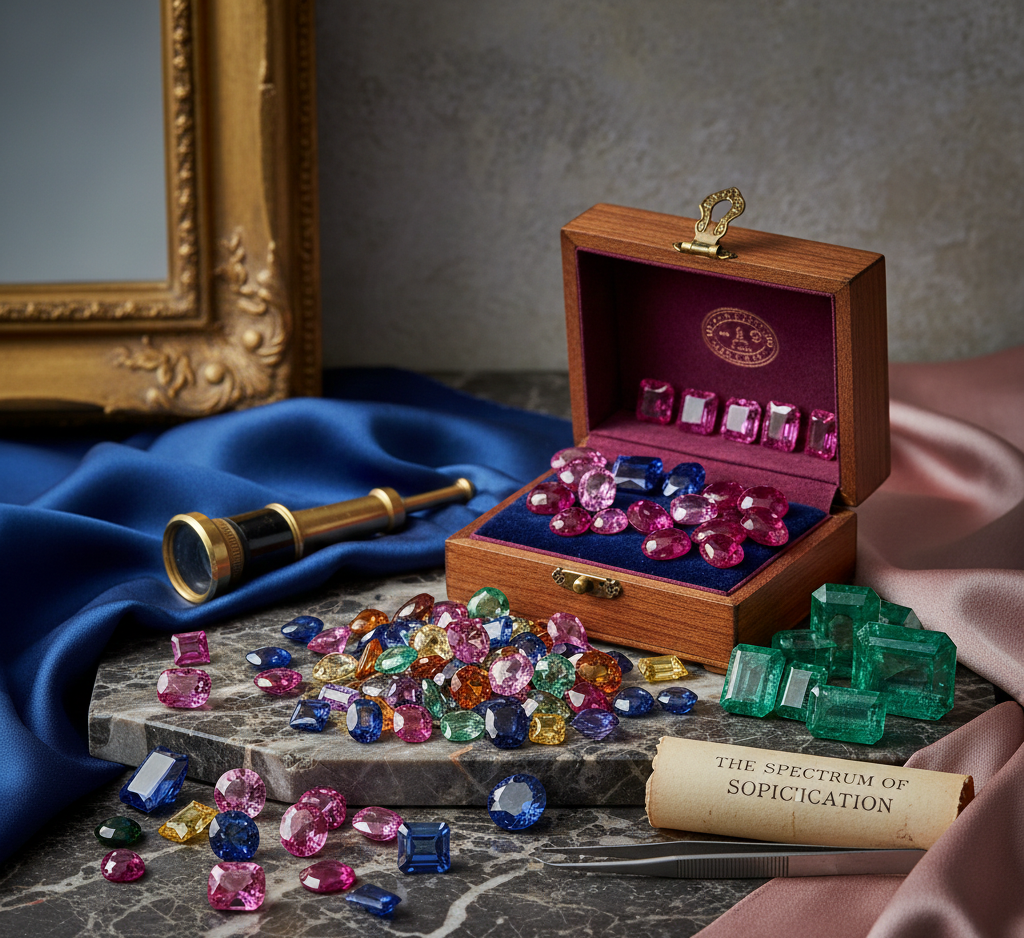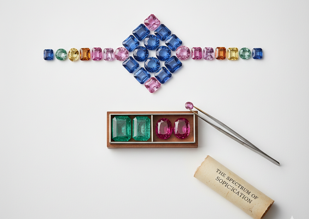 It highlights Sapphires, Rubies, and Emeralds as the high-value "precious" stones they are.